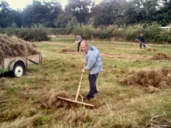 This year we cut the meadow grass rather late in the season with volunteers raking it all up for composting on 18th September. Click on image for larger photo.