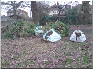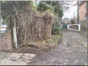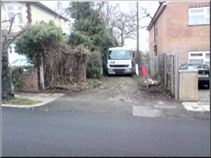First we had to clear foliage from the entrance to allow the truck to pass. |