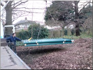 We have taken delivery of a container for tool storage and we have cleared the concreted area where the old pavilion stood. The delivery and building of the container is recorded here in sequence. |
