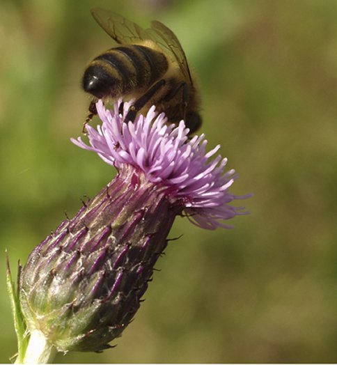 Honey bees are honey-coloured with a few scanty hairs, a small waist and a sting.