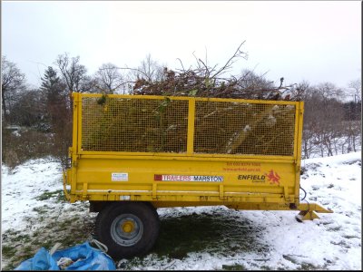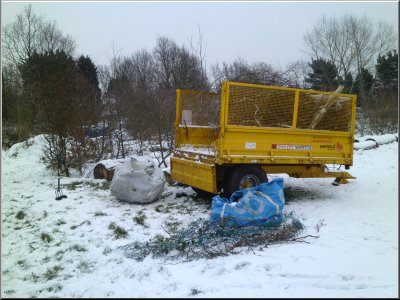 Our thanks to LBE for help with the trailer. This is the first part of the promise of access to equipment being delivered by LBE, which is very useful indeed to get rid of materials that won't compost down, and also the rubbish that has built up over about 5 years, which isn't much in the greater scheme of things. We don't have very much rubbish arising from Woodcroft Wildspace activities. |